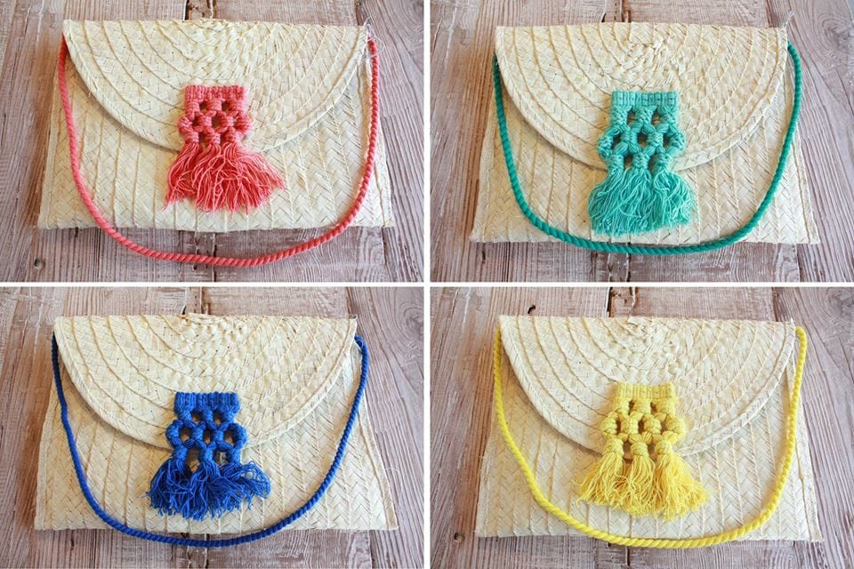 Teixits Vicens colabora con artesanos mallorquines para promover los productos mediterráneos hechos a mano como la bolsa de mano de palmito combinada con cordón y fleco hecho en nuestro taller de Pollença.