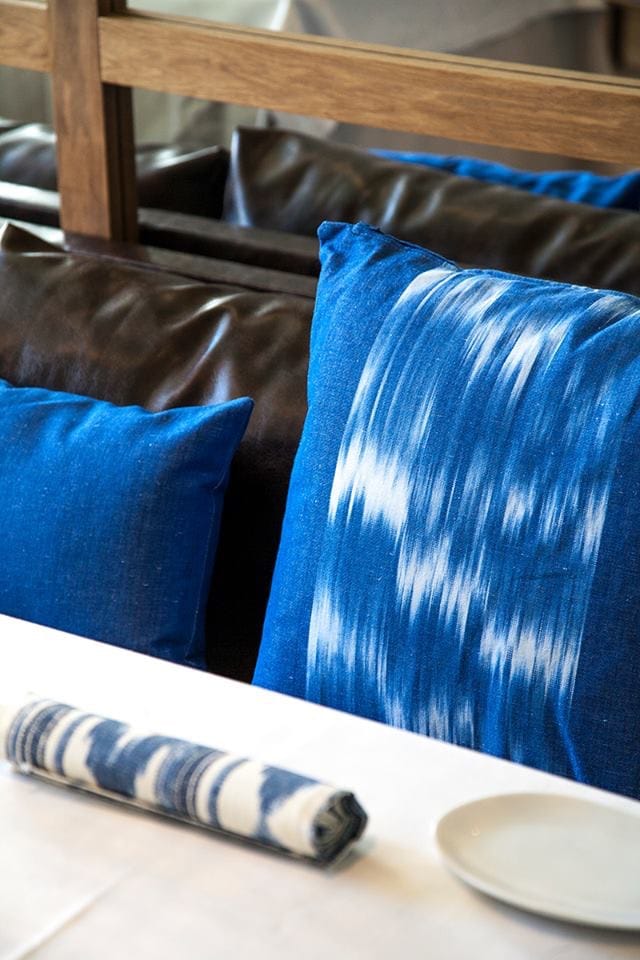 Teixits Vicens colaborates with the decoration dressing chairs and sofas with its ikat fabrics cushions also known as ” tela de lenguas”, wich is the very typical fabric from Mallorca.